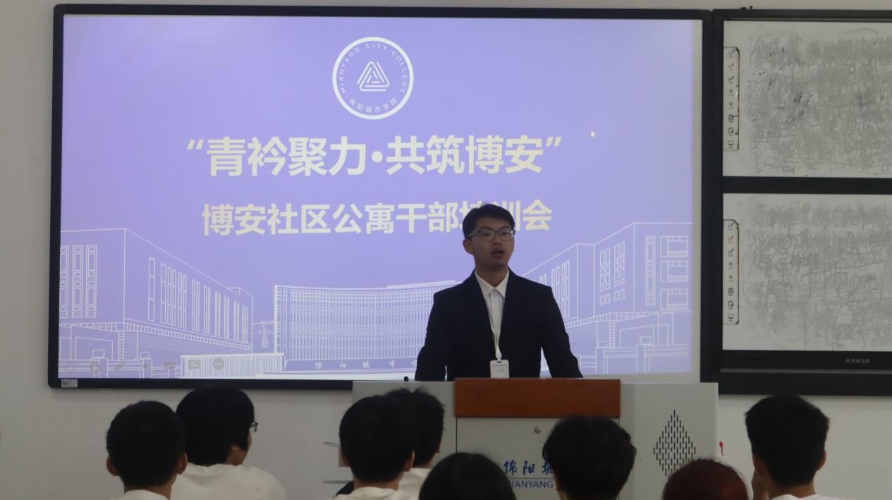 为夯实公寓管理队伍建设,切实筑牢和谐、安全、文明的宿舍环境根基,9月17日,博安学生社区宿管部在博文楼104教室顺利举办以“青衿聚力・共筑博安”为主题的公寓干部培训会,副区长于洁、指导老师钟晓娟以及全体公寓干部参与本次培训。