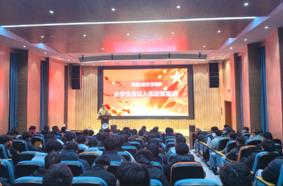 近日,博育学生社区联合学校征兵工作站,于游仙校区守正书院会堂成功举办大学生应征入伍政策宣讲会。此次活动旨在激发在校学子参军报国的热情,引导青年学生积极投身国防事业。宣讲会特邀绵阳城市学院保卫处副处长、征兵工作站站长张恒华担任主讲,为现场百余名有志青年系统解读了入伍政策,并分享军旅生涯感悟。