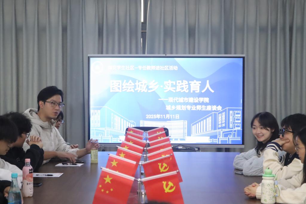 近日,现代城市建设学院城乡规划教研室在博安“一站式” 学生社区会议室举办“图绘城乡・实践育人”师生座谈会。教研室主任刘海静、辅导员钟晓娟与30余名学生代表齐聚一堂,围绕“专业—生活—升学—竞赛”四维议题进行深入交流。此次活动不仅打通了专业教育与成长服务的“最后一公里”,更为后续精准对接学生需求、提升育人质量奠定了坚实基础。