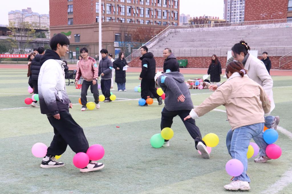 教师专场活动中,成员并肩参与“踩气球”“达芬奇密码”等互动项目。活动现场氛围轻松热烈,教师们展现出工作之外的活力风采,跨学科交流与育人经验分享在协作中自然发生。师生共同挑战的设置,让学生干部在发挥引导作用的同时成为战友,这种“亦师亦友”的互动模式,既助力学生提升综合能力,也让教师从学生视角获得育人启迪,生动诠释了“在活动中育人、在互动中成长”的理念。