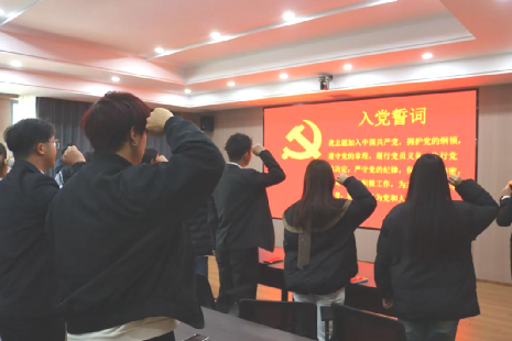 分享会在庄严肃穆的重温入党誓词中拉开帷幕。全体党员整齐肃立、面向党旗庄严宣誓,铿锵有力的誓言回荡全场,彰显了坚守初心、勇担使命的坚定信念,也为活动奠定了庄重昂扬的基调。